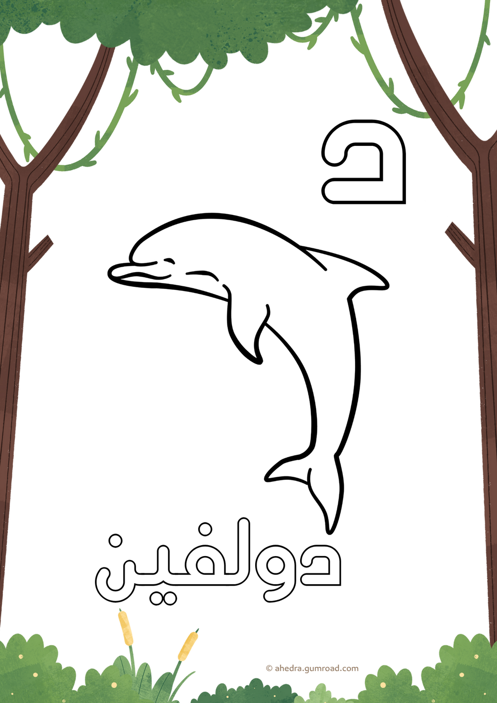 A fun and educational coloring book to help children learn the Arabic alphabet (28 letters), using animals that start with each letter.