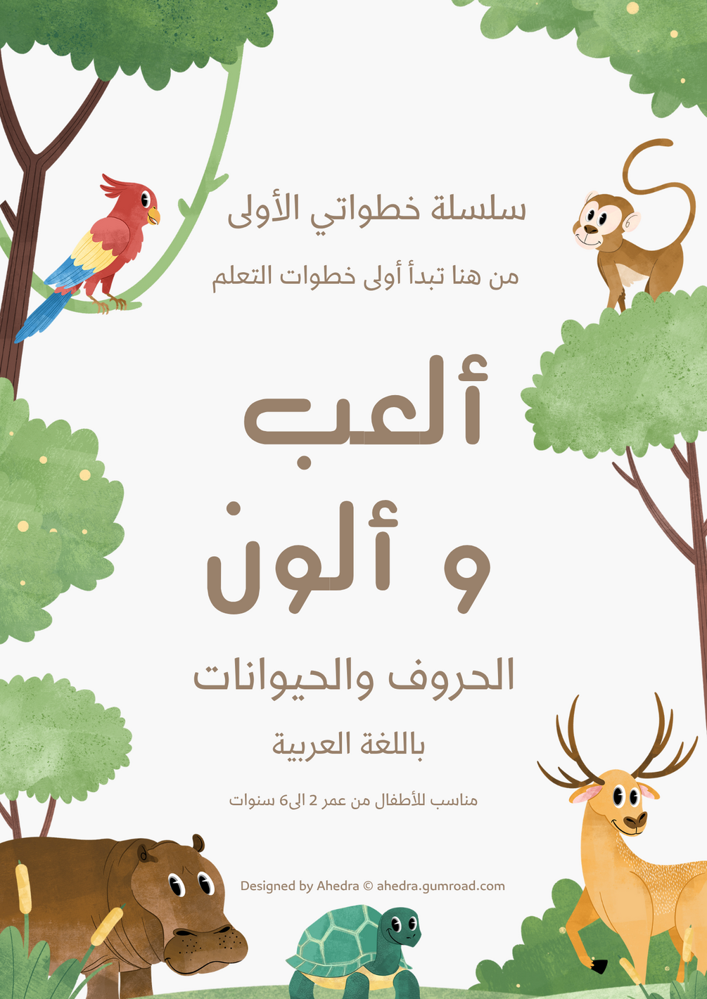 كتيب ممتع يساعد الطفل على تعلّم الحروف العربية من خلال التلوين، مع صور لحيوانات تبدأ بنفس الحرف، ونشاطات بسيطة تدعم الإدراك البصري واللغوي.